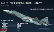 首先简析下苏-57的概况。苏-57是由俄罗斯苏霍伊设计局于21世纪初(2002年左右)研发的单座双发隐身多用途重型战机,脱胎于俄空天军的PAK FA(俄语“未来前线战斗机系统”缩写)项目,其首架原型机于2010年1月成功首飞,截至2017年9月已制造了11架原型机(其中4架目前已派往叙利亚)。本图列举了目前西方军事刊物对苏-57的技参性能推测,实际其性能参数仍处于保密阶段。