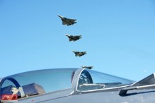 4架苏-57隐身战机组成梯队,从试飞中心上空低空通场。