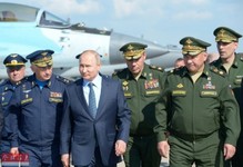 俄总统普京在俄军高官陪同下,视察俄国家试飞中心。