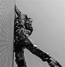 轻装机动和负重行军项目,以单兵在复杂地形条件下的敌后作战、快速穿插、物资前送等为背景。负重行军除了考验单兵负荷45公斤疾行3公里的能力外,还增设模拟战场背负伤员转移能力考核。测试组负责人告诉笔者:“项目内容及评分标准制订,充分研究借鉴了近年来几场局部战争外军长距离、大负荷机动的实战经验,遵循了战伤救治‘白金10分钟’的规律,同时调研了部队在高原山地环境下行进速度受坡度影响等问题。”
