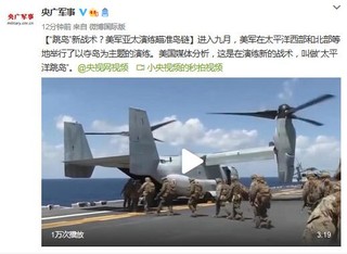 据@央广军事消息,进入九月,美军在太平洋西部和北部等地举行了以夺岛为主题的演练。美国媒体分析,这是在演练新的战术,叫做“太平洋跳岛”。