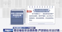 中国政法大学刑事司法学院教授 阮齐林:以这样列举的三种三类方式之一催讨非法债务就构成本罪,这样的话入罪的门槛就低了,而且入罪的行为类型也明确了。
