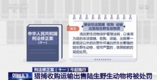 中国政法大学刑事司法学院教授 阮齐林:这个规定和以前有一个很大的变化,就是说对于野生动物,如果是以食用为目的,进行猎捕,猎杀或者是收购或者是运输或者是买卖,那么这种情况之下可以构成本罪,而且本罪的话没有限定是珍稀濒危野生动物,只要是野生的陆生动物就可以,尽管是以食用为目的,那么都可能涉嫌犯罪,情节严重的要追究刑事责任。