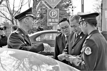 海北州检察院检察官与相关行政部门人员现场了解巡游出租车有关情况。