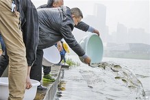 近日,湖南省长沙市开福区人民法院联合长沙市中级人民法院、开福区人民检察院、渔政、街道等部门,在开福区湘江世纪城亲水平台增殖放流点开展“十年禁渔”专项司法行动暨增殖放流活动,现场执行4起非法捕捞水产品公益诉讼案,向湘江水域投放鱼苗1.1万尾。