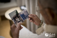 罗凤坤老人看着自己老伴的照片。人民网记者 翁奇羽摄