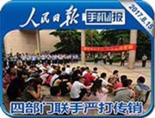 教育部、公安部等四部门近日印发通知,要求严厉打击、依法取缔传销组织。通知要求,严厉打击、依法取缔传销组织。加强对传销重点区域的排查清理,对聚集型传销易发、多发区域,全面反复清查,完善防控、遏制措施,坚决查处一批传销组织和传销骨干。对打着“创业、就业”的幌子,以“招聘”“介绍工作”为名,诱骗求职人员参加的各类传销组织,坚决铲除。同时,加强对重点招聘平台的排查,压实平台企业的责任。严肃处理传播涉传信息的企业、组织和个人。加强对人民群众的宣传教育。重点做好大学生和求职人群的教育引导工作,提升对传销活动的防范意识。图为6月28日南宁警方开展打击传销集中清查整治行动。(人民网、新华网)