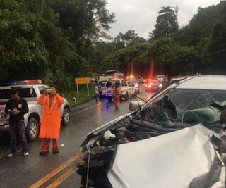 据中国驻清迈总领馆消息,当地时间20日16时30分,一辆载有中国游客的旅游面包车在清迈府堆沙革县的省际公路上与一辆皮卡相撞(图)。事故造成11名中国游客受伤,其中5人受伤严重。目前上述伤者均已被紧急送往医院治疗。中国驻清迈总领馆第一时间派领事官员赶赴医院探望受伤中国游客,与泰国警方、旅游局及组团旅行社一道积极协助医院救治工作。(新华社)