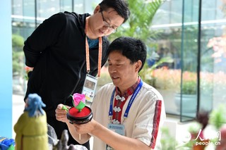 曹州面人艺人向媒体记者展示传统文化魅力。(人民网记者 翁奇羽 摄)