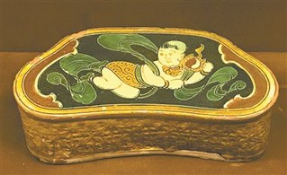 三彩剔地刻婴孩纹三瓣花形枕