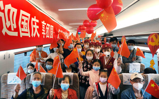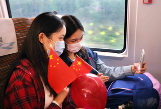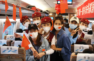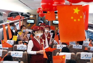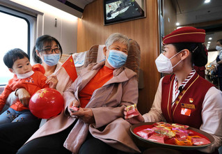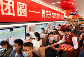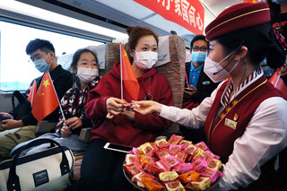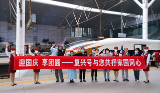 人民网北京10月2日电 (孟植良)10月1日,中国铁路北京局集团有限公司天津客运段在京津城际C2020次列车上举办了“迎国庆 享团圆——复兴号与您共抒家国同心”主题活动,与旅客同欢共乐庆佳节。乘务人员一边唱着"我和我的祖国”一边进入车厢,并与旅客共同歌唱,抒发家国同心、密不可分的真切感情,将车厢氛围推向高潮。乘务人员并为旅客送上中秋月饼和节日的祝福。