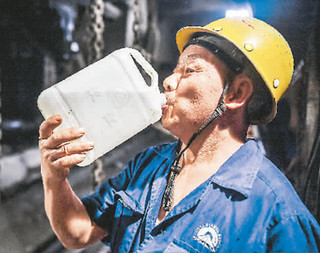 在隧道掘进过程中,因为不断出汗,工人需要大量补水。