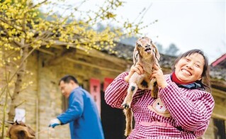 图二为重庆市长寿区葛兰镇塘坝村脱贫户秦淑辉抱着刚出生不久的小羊羔。