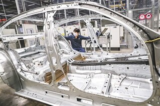 图一为工人在华晨宝马汽车有限公司铁西工厂生产线上工作。2月17日,宝马设在沈阳的全球最大生产基地复工。