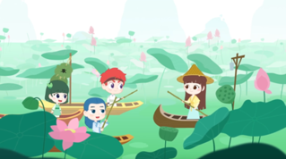 以古诗故事《江南》一课为例,葱郁茂盛的莲叶,欢乐嬉戏的游鱼,和课本中的人物一起乘船采莲,和采莲女直接“对话”……这些古诗中的元素、采莲过程中发生的故事,让孩子能够直观感受江南采莲时节的美景,也能记住诗歌中描绘的江南采莲热闹场面。孩子们不仅能够理解《采莲》这首诗,更能够形成深刻记忆,在之后的生活中灵活运用。