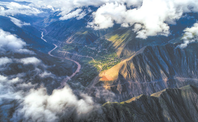 穿过澜沧江峡谷的滇藏公路。