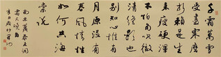 魏开功年少苦读,青年学优,他是励志型的早期成名的书法家,笔墨的情怀使他定心于方寸之间,也在诗酒趁年华中难分伯仲。而这里的“酒”是曰其题字的墨香,诚然其人的豪饮抒怀,举杯邀明月亦是性情中人。位于洪湖市中心城区的“工人文化宫”几个大字矗立30多年,足以见证他和故土乡愁的血浓于水的笔墨深情。“腹有诗书气自华”魏开功为人忠厚坦诚,儒雅随和,常怀慈悲善意入世和处世,知行合一在他的书法内化和外化之间恰切融汇,自然贯通。魏开功擅长行书,取法康有为,多用之写对联、条幅、榜书或题匾额等;同时他的章草涵泳当代章草大家王蘧常,再上溯秦汉篆隶,多用之作横幅、小品等。在行书和章草两者之中,运笔的胆识和慧思是依靠较高的专业学养支撑的,不在墨守成规之内,就在圆融破壳之外,或许他的“不按常规”运笔就是自我的一种书写魅力的凸显,笔力的出鞘也淋漓尽致揭示内心深处的快意豪放。诚然魏开功的书法是耐读的,也经得起时间的考验和打磨,他摒弃了炫技和表象的临摹,而是在用心认真地创作一种固定的“魏式”风格,笔毫下如有风,实则一种“墨分五彩”的真功力,传统的艺术之美感除了诗书气,最重要的就是作品的“精神气象”,显然在魏开功这里是实至名归的。