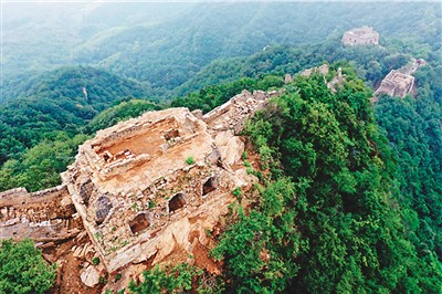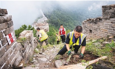 目前,在总长约10公里的箭扣长城段,完成和正在修缮的已达5公里。