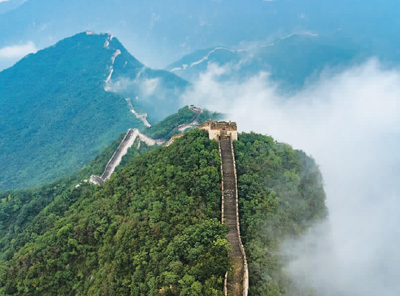 2022年8月下旬,北京市怀柔区雨过天晴,境内箭扣长城水汽升腾,云雾缭绕,新修缮的长城若隐若现,壮美如画。 |