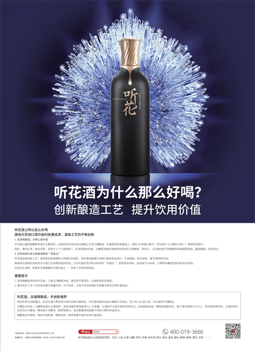坚持传承与创新融合,追求白酒口感风味升级和全新价值体验,听花酒构建定向成分编辑工艺体系。至少经109道工序,对白酒进行再酿造。
