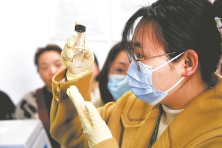 3月20日,在合肥市蜀山区井岗镇卫楼社区,团员青年在工作人员指导下进行水质实验。当日,该社区开展“爱水护水 你我同行”主题活动,加强团员青年的节约用水意识。 通讯员 葛宜年 摄