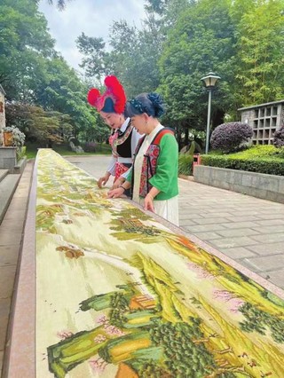近日,长22米、宽1米的十字绣版《清明上河图》亮相昆明市乐居民族文化园的彝绣展馆,这是目前我省已知的最长《清明上河图》手绣作品。该作品由周紫萍女士耗时10年绣制,花费49种2万多根绣线,落针超530万次。