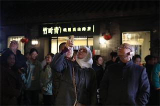 宽窄巷子保留了许多老成都的建筑风貌和生活方式。位于窄巷子27号的一座小洋楼引来北马其顿的嘉宾萨什科·纳塞夫的驻足。这是一座具有欧式风格的建筑,屋顶中式、楼身西式,与周围的传统建筑形成了鲜明的对比。喜欢历史的萨什科·纳塞夫说:“这是我第二次来宽窄巷子,这次又发现了惊喜,喜欢这里的古朴建筑和文化氛围,这些建筑在夜晚的灯光下增加了神秘感,太有魅力了。”