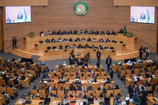 2024年2月17日,非洲联盟(非盟)第37届首脑会议在位于埃塞俄比亚首都亚的斯亚贝巴的非盟总部开幕。新华社记者 李亚辉 摄