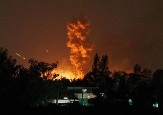 2011年8月9日,利比亚首都的黎波里遭到北约空袭后升起浓烟。新华社发(哈姆扎·图尔基亚 摄)